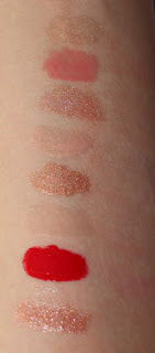 Die Swatches sind in der selben Reihenfolge, in der die Lippis oben liegen. Ich schreib nicht zu jedem die Farbe und die Marke auf, das ist unnötig, wenn ihr genaueres wissen wollt, dass fragt bitte einfach in den Kommentaren ;)